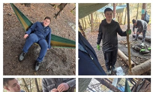 In forest school, learners worked together to make paracord bracelets, carefully weaving the cord to create their own colourful and practical accessories. They also explored woodcraft by using pieces of tree trunks to create small wooden accessories, developing their creativity while learning about natural materials.